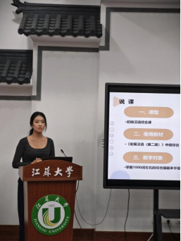 本次比赛共由三个部分组成。首先,主持人介绍了出席本次比赛的评委老师,并详细说明了比赛要求与流程。然后,11名选手按照抽签顺序依次上台进行说课、试讲与中华才艺展示。展示结束后,主持人公布选手得分。最后,陈敏老师、唐敏老师和王丽媛老师对比赛进行了总结与点评。本次比赛活动内容丰富,流程紧凑、精彩纷呈,极具挑战性与观赏性。每位选手都展示出了最佳风貌与最优水平。