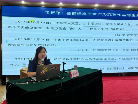 9月19日上午,受南京市文联邀请,伟德国际1946副院长、语言文化中心副主任余红艳教授为南京市文联“第十三期南京文艺家读书班”作题为“高质量文艺与文化景观的跨媒介生产:以经典传说景观叙事为例”的专题讲座。