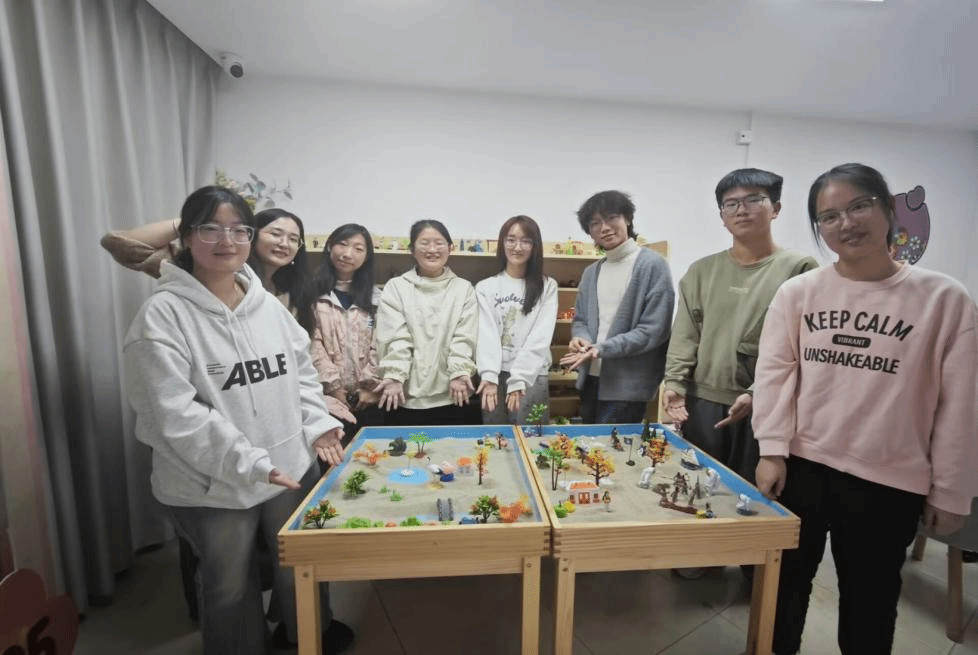 首先,王芷悠组织心理委员们选择“最符合自己特点”的小玩偶来进行自我介绍,深化对彼此的了解,拉近距离。接着,心理委员们分为两组,以“人生最理想的时刻”为主题,分别在沙盘上摆出相应的情景。最后,心理委员们依次介绍自己的作品并且与王芷悠进行互动交流,更加深刻地认识了自己,释放了心理压力。