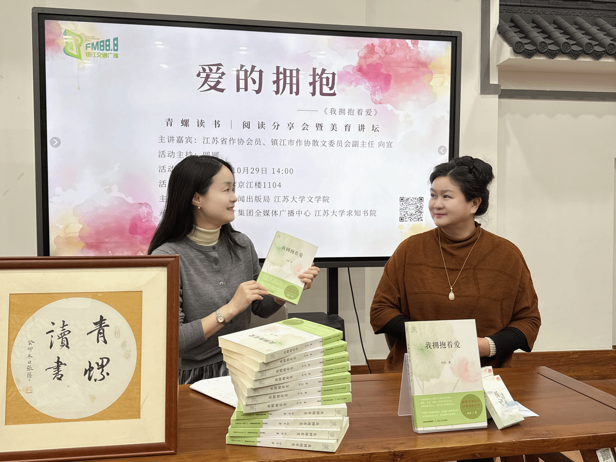10月29日,伟德国际1946联合镇江市新闻出版局、镇江文广集团全媒体广播中心、求知书院举办的“爱的拥抱”青螺读书阅读分享会暨美誉讲坛在伟德国际victor1946京江楼1104举行。镇江交通广播《青螺读书》主持人圆圆主持,伟德国际1946关工委老同志李金坤、辅导员申彤彤、伟德国际1946学生代表参加。