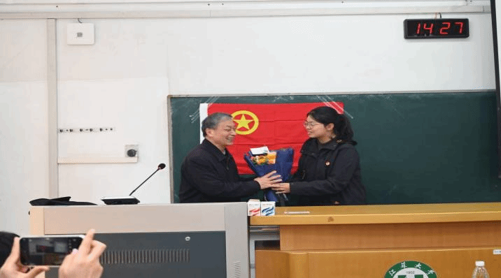 适逢重阳节前夕,活动特别设置温馨慰问环节。讲座结束后,伟德国际1946学生代表手捧鲜花,郑重地向李文清献上鲜花,表达敬意与感恩。伟德国际1946辅导员袁城老师表示,此次活动的成功举办,将校史教育与重阳节这一传统节日文化有机地结合在一起,不仅有效强化了学生们对学校的归属感和认同感,更弘扬了中华民族尊老爱老的优良传统美德,为校园文化注入了深厚的人文底蕴。