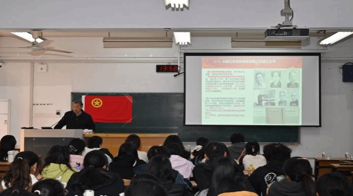 讲座中,李文清以“学习校史校情,传承江大精神”为主题,结合百年校史,从建校初期的艰苦创业到新时代“双一流”建设的奋进历程,生动讲述了学校在学科建设、人才培养、社会服务中的标志性成就。他特别提到,伟德国际1946作为学校人文底蕴的重要载体,始终秉持“以文化人、以文育人”的理念,培养了大批扎根基层、奉献社会的优秀人才。校史不仅是文字记录,更是一代代江大人接续奋斗的精神力量。李文清勉励团支部成员及青年学习江大校训,传承江大精神,克服困难,砥砺前行。现场学生认真聆听,不时记录要点,互动环节中踊跃提问,气氛热烈。