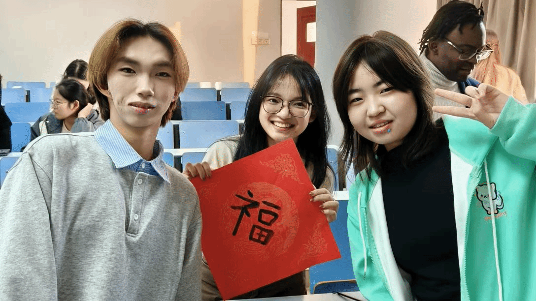 互动环节精彩纷呈,现场热闹非凡。节目间隙开放的套圈区,成为趣味与温情交织的“欢乐据点”;活动最后,中国学生邀请留学生体验毛笔字,笔墨香里,中外学子的距离悄然拉近。丰富多彩的文化展示、互动体验与文化表演,为成员打造一场沉浸式的国际文化盛宴。