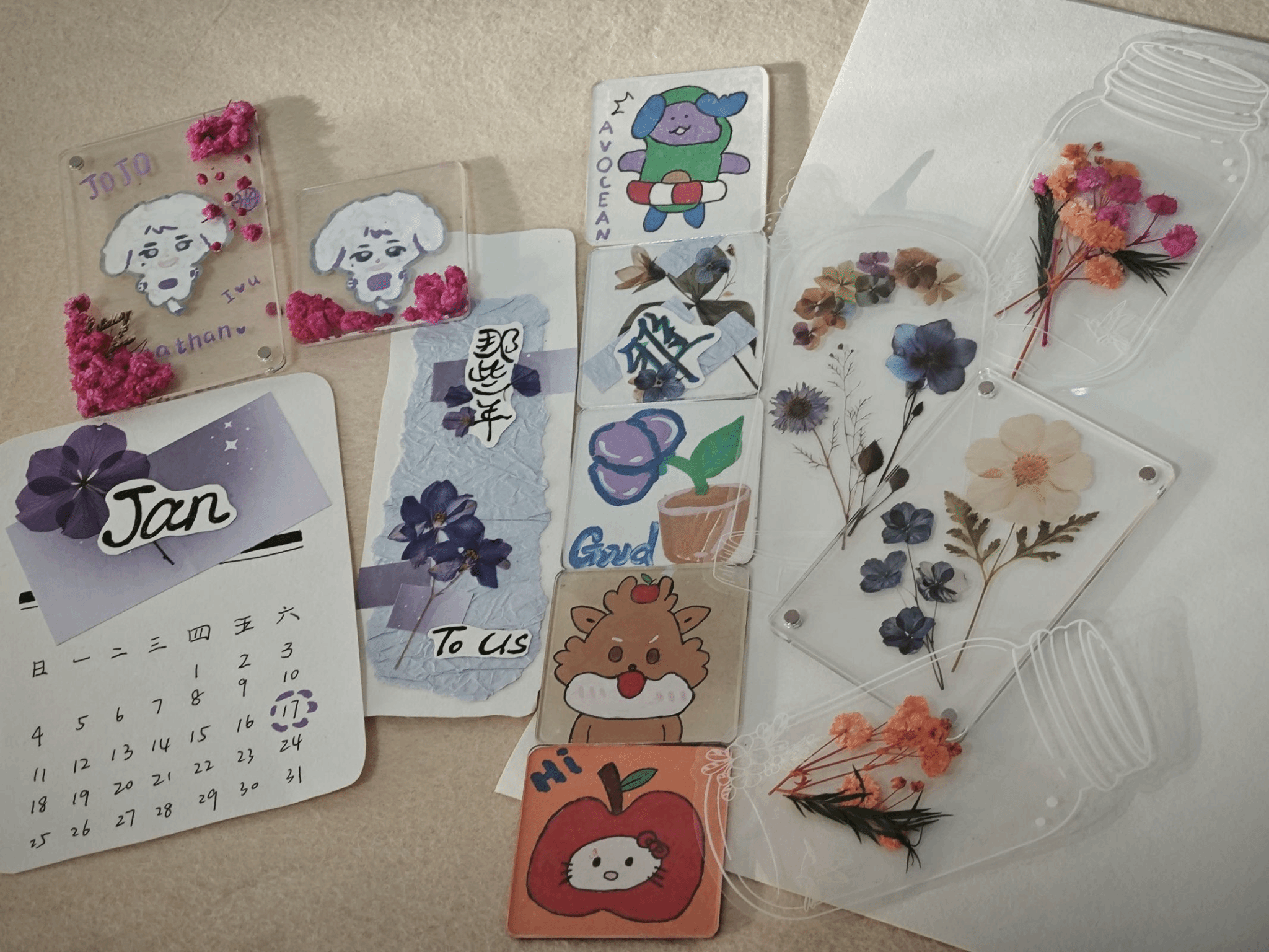 在本次活动中,大家分小组展开制作,利用干花、落叶等自然素材,发挥想象力,制作出精美的手工作品。在活动过程中,同学们积极地交流想法、互帮互助,在手工共创中治愈内心,收获温暖,也拉近了彼此的距离。最后,大家制作出落叶书签、创意冰箱贴等各具特色的手工作品,有用落叶拼成蝴蝶的书签,也有用满天星装饰的冰箱贴。同学们将作品展示在留言板上,同步书写心愿与鼓励的话语,留下美好的回忆。