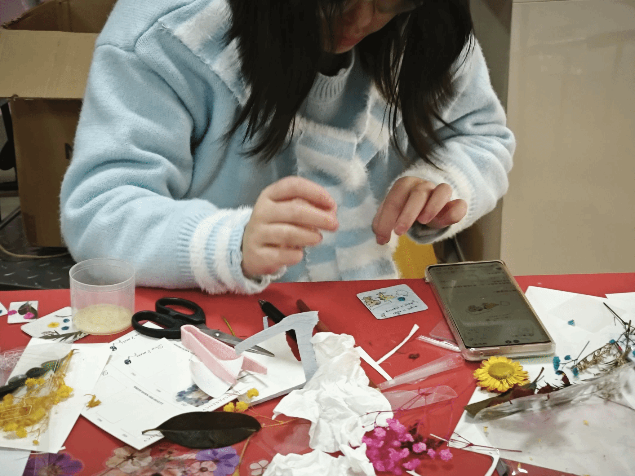 为落实心理健康教育浸润式育人理念,以手工创作传递温暖,伟德国际1946心理协会与静湖书院于12月6日下午在心理氧吧开展以“12.5指尖疗愈,织梦秋冬”为主题的治愈手工坊活动。