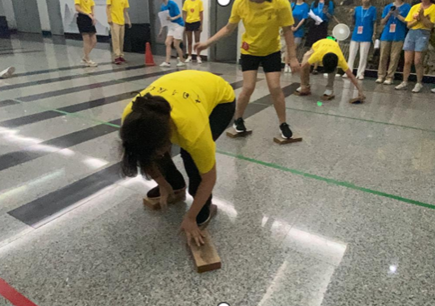 At 7 pm, the fun sports meeting starts on time. During the sports meeting, the campers were active and enthusiastic. The fun sports meeting includes games such as two men with three legs, ball on the back, and tennis shooting. The campers were divided into three groups and after eagerly completing the pre competition preparations, they each rubbed their hands and gathered their strength to start.