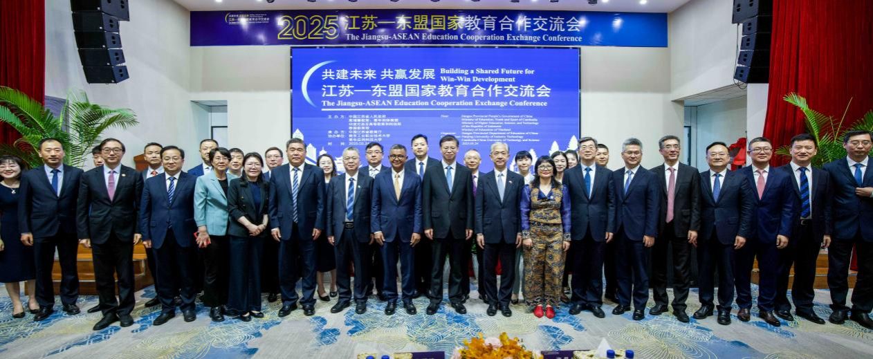 On May 24, the "Jiangsu-ASEAN Countries Education Cooperation and Exchange Conference" was held at the Khmer-Chinese University of Applied Sciences in Cambodia. At the exchange meeting, JSU took the lead in launching the "Jiangsu-ASEAN Countries Youth Student Exchange Program" with Hohai University, Nanjing Forestry University and other Jiangsu universities and universities such as Universiti Putra Malaysia, Royal Institute of Technology of Cambodia, Hun Sen College of Public Works and Transportation in Cambodia, Tuanhua University in Cambodia, and Royal Institute of Technology in Tanaburi in Thailand. The program aims to improve long-term mechanisms such as exchange visits of experts and scholars, scholarships-funded exchange student mobility, trust fund projects, summer schools, etc., build a multi-dimensional people-to-people exchange network, and cultivate more ASEAN-China friendship envoys.